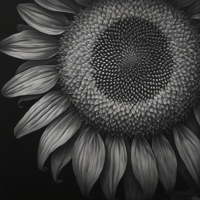 Imagina un mundo entero de todo eso: fértil, un cielo despejado, de viento tibio que refresca, que no interrumpe, pero te acompaña. Donde no hay contaminación sónica, ni muros. Solo girasoles girando al unísono en búsqueda de su vital vitaminico, como si recordaran algo que nosotros olvidamos.